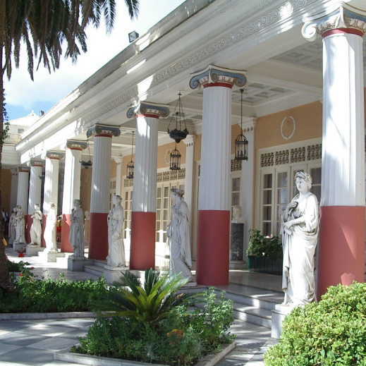 Even before a visitor has entered the palace of Achilleion , they will feel the greatness endowed by looking at the even the first statues that inhabit the outer areas, all inspired by ancient Greek mythology.